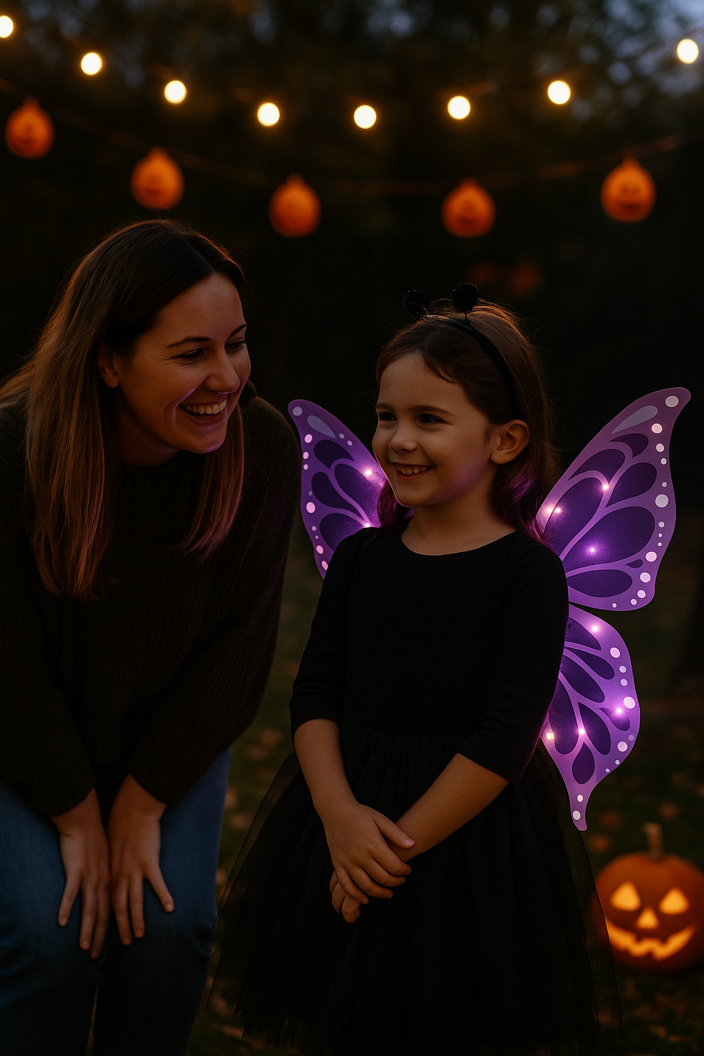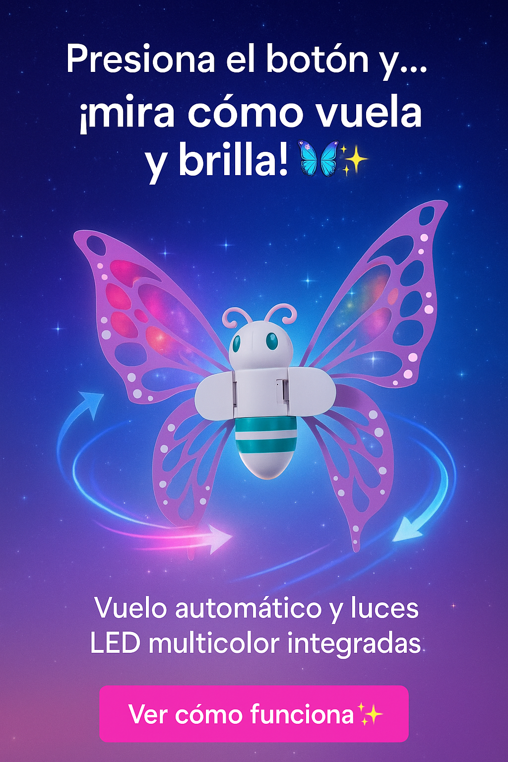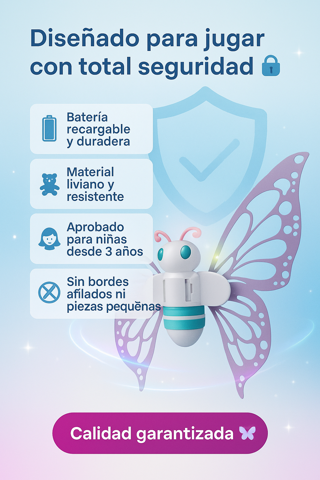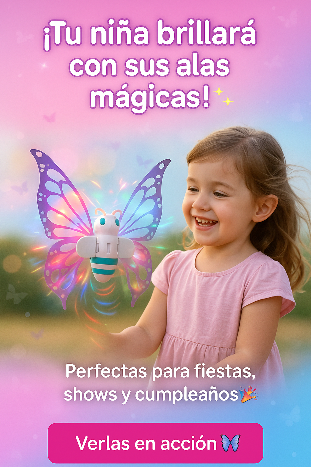 Diseñado para resistir juegos, movimientos y uso frecuente. A diferencia de otras alas, Mariposa Mágica mantiene su brillo y forma por mucho más tiempo.